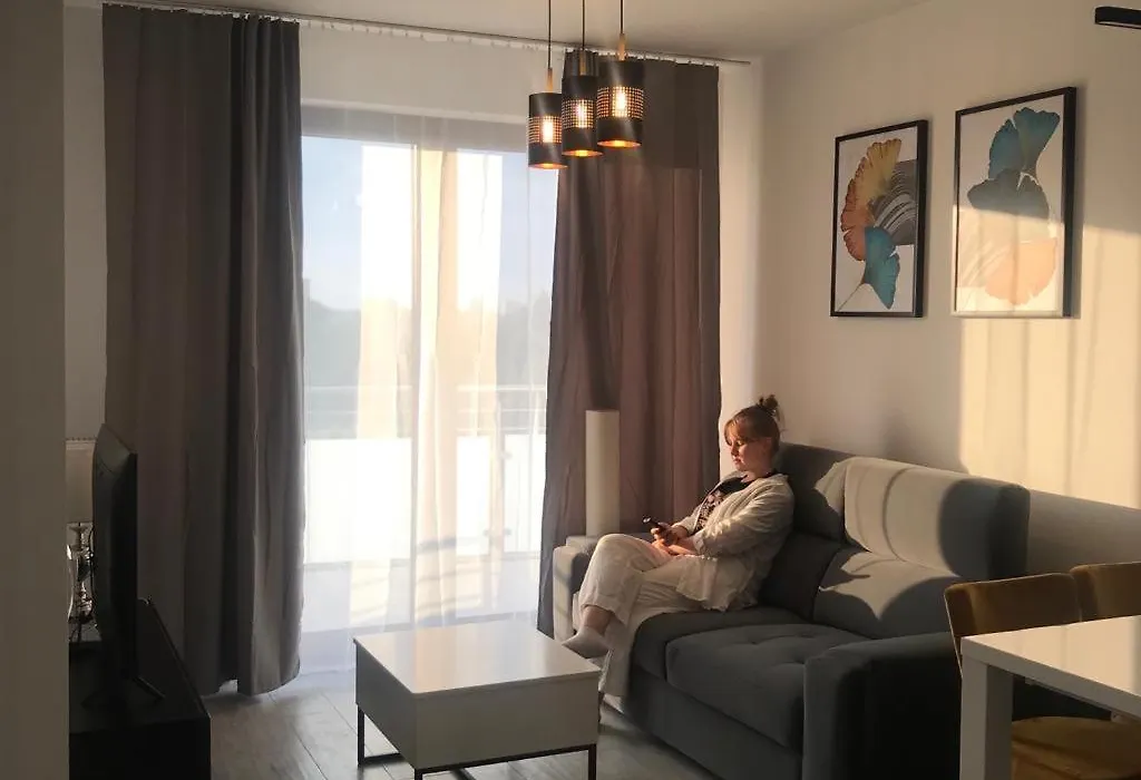 Apartament Barcelona Apartment apartment is situated in Podgórze with memorials to Krakow's Holocaust history, including the Pharmacy Under the Eagle museum and an art installation of metal chairs on Ghetto Heroes Square, nearly a 10-minute ride from Main Square, and overlooks the river. The apartment features a terrace that overlooks the city.